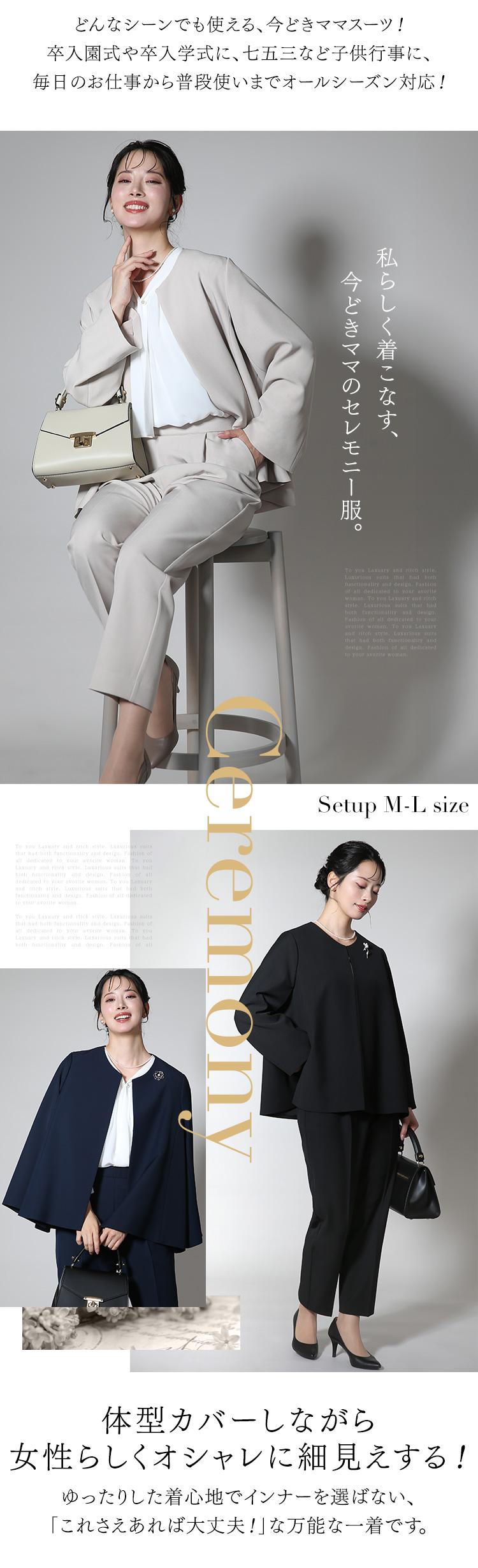 TOP 卒園式・入学式セレモニースーツパンツスーツ 着用シーンで選ぶセレモニー(入園式・入学式・卒園式・卒業式) 着用シーンで選ぶ七五三・お宮参り 着用シーンで選ぶ結婚式・披露宴 スーツ レディース セレモニースーツ 入学式 ママスーツ 卒業式 スーツ 母 入園式 卒園式 七五三 お宮参り 結婚式 母親 パンツスーツ セットアップ フォーマル 大きいサイズ おしゃれ 体型カバー 30代 40代 50代 3点セット ベージュ ネイビー ブラック CS-2302 送料無料 メーカー希望小売価格: ¥22,800(税込) 価格: ¥17,800 (税込) 21%OFF [ポイント還元 178ポイント~] 販売期間: 数量: 個 サイズカラー在庫購入M(9号)ベージュ× ネイビー△ ブラック○ L(11号)ベージュ△ ネイビー○ ブラック○ サイズカラー在庫購入M(9号)ベージュ× ネイビー△ ブラック○ L(11号)ベージュ△ ネイビー○ ブラック○ 返品・交換についての詳細はこちら レビューはありません スーツ レディース セレモニースーツ 入学式 ママスーツ 卒業式 スーツ 母 入園式 卒園式 七五三 お宮参り 結婚式 母親 パンツスーツ セットアップ フォーマル 大きいサイズ おしゃれ 体型カバー 30代 40代 50代 3点セット ベージュ ネイビー ブラック CS-2302 送料無料 メーカー希望小売価格: ¥22,800(税込) 価格: ¥17,800 (税込) 21%OFF [ポイント還元 178ポイント~] 販売期間: 数量: 個 サイズカラー在庫購入M(9号)ベージュ× ネイビー△ ブラック○ L(11号)ベージュ△ ネイビー○ ブラック○ サイズカラー在庫購入M(9号)ベージュ× ネイビー△ ブラック○ L(11号)ベージュ△ ネイビー○ ブラック○ 返品・交換についての詳細はこちら レビューはありません 関連商品 【石原さとみさん ドラマ着用】 喪服 レディース ブラックフォーマル 礼服 スーツ ワンピース ロング丈 洗える 大きいサイズ 40代 50代 7号 9号 11号 13号 15号 NGR-2104 メーカー希望小売価格: ¥38,750(税込) ¥21,800(税込) 【松下奈緒さん ドラマ着用】 喪服 レディース ブラックフォーマル 正喪服 礼服 ロング丈 大きいサイズ 前開き 黒 スーツ フォーマル ブラウス スカート 入園式 卒園式 卒業式 30代 40代 50代 9号 11号 13号 15号 17号 19号 21号 NGR-2128 送料無料 メーカー希望小売価格: ¥44,500(税込) ¥29,800(税込) 【井上真央さん ドラマ着用】 喪服 レディース ブラックフォーマル 礼服 パンツ スーツ パンツスーツ 女性 洗える 大きいサイズ 7号 9号 11号 13号 15号 17号 NGR-2139 送料無料 メーカー希望小売価格: ¥44,500(税込) ¥29,800(税込) 【33%OFF】 ブラックフォーマル 夏用 喪服 礼服 レディース パンツスーツ ロング丈 洗える 大きいサイズ 黒 スーツ フォーマル ワイドパンツ ブラック 結婚式 七五三 法事 入園式 入学式 卒園式 卒業式 30代 40代 50代 60代 M L LL NGR-SS7226 送料無料 メーカー希望小売価格: ¥22,090(税込) ¥14,800(税込) 【33%OFF】 ブラックフォーマル 夏用 喪服 礼服 レディース ロング丈 ワンピース 洗える 大きいサイズ 前開き 黒 スーツ フォーマル ブラック 結婚式 七五三 法事 入園式 入学式 卒園式 卒業式 30代 40代 50代 60代 S M L LL 3L NGR-SS7125 送料無料 メーカー希望小売価格: ¥22,090(税込) ¥14,800(税込) 【28%OFF】 喪服 ブラックフォーマル レディース パンツスーツ 礼服 ロング丈 洗える 大きいサイズ 黒 スーツ フォーマル ワイドパンツ オールシーズン ブラック 結婚式 七五三 法事 入園式 入学式 卒園式 卒業式 服装 母親 30代 40代 50代 60代 M L LL NGR-5011 送料無料 メーカー希望小売価格: ¥24,800(税込) ¥17,800(税込) 【28%OFF】 喪服 ブラックフォーマル レディース ワンピース 礼服 ロング丈 洗える 大きいサイズ 前開き 黒 スーツ フォーマル オールシーズン ブラック 結婚式 七五三 法事 入園式 入学式 卒園式 卒業式 服装 母親 30代 40代 50代 60代 M L LL NGR-5013 送料無料 メーカー希望小売価格: ¥17,800(税込) ¥12,800(税込) 【峯岸みなみさん ドラマ着用】 喪服 ブラックフォーマル レディース 礼服 ロング丈 洗える 大きいサイズ 黒 スーツ フォーマル スカート オールシーズン ブラック 結婚式 七五三 法事 入園式 入学式 卒園式 卒業式 服装 母親 40代 50代 60代 M L LL NGR-5012 送料無料 メーカー希望小売価格: ¥27,800(税込) ¥19,800(税込) 【28%OFF】 喪服 ブラックフォーマル レディース ワンピース 礼服 ロング丈 洗える 大きいサイズ 前開き 黒 スーツ フォーマル オールシーズン ブラック 結婚式 七五三 法事 入園式 入学式 卒園式 卒業式 服装 母親 30代 40代 50代 60代 M L LL NGR-5014 送料無料 メーカー希望小売価格: ¥24,800(税込) ¥17,800(税込) 【石田ひかりさん ドラマ着用】 喪服 ブラックフォーマル レディース 日本製 礼服 ロング丈 大きいサイズ ゆったり 黒 スーツ フォーマル ワンピース オールシーズン ブラック 結婚式 七五三 法事 入園式 入学式 卒園式 卒業式 服装 母親 50代 9号 11号 13号 15号 DI-60010 メーカー希望小売価格: ¥89,100(税込) ¥49,800(税込)