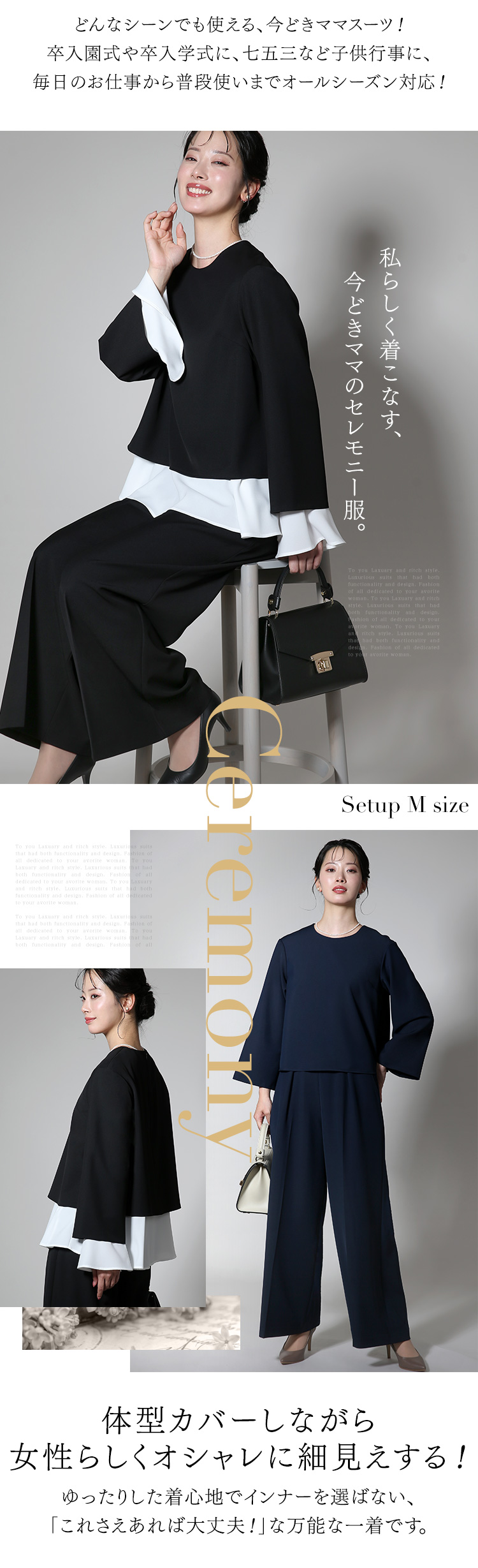 TOP 卒園式・入学式セレモニースーツパンツスーツ 着用シーンで選ぶセレモニー(入園式・入学式・卒園式・卒業式) 着用シーンで選ぶ七五三・お宮参り 着用シーンで選ぶ結婚式・披露宴 スーツ レディース セレモニースーツ 入学式 ママスーツ 卒業式 スーツ 母 入園式 卒園式 七五三 お宮参り 結婚式 母親 パンツスーツ セットアップ フォーマル 大きいサイズ おしゃれ 体型カバー 30代 40代 50代 3点セット ネイビー ブラック CS-2303 送料無料 メーカー希望小売価格: ¥27,800(税込) 価格: ¥21,800 (税込) 21%OFF [ポイント還元 218ポイント~] 販売期間: 数量: 個 サイズカラー在庫購入M(9号)ネイビー○ ブラック○ サイズカラー在庫購入M(9号)ネイビー○ ブラック○ 返品・交換についての詳細はこちら レビューはありません スーツ レディース セレモニースーツ 入学式 ママスーツ 卒業式 スーツ 母 入園式 卒園式 七五三 お宮参り 結婚式 母親 パンツスーツ セットアップ フォーマル 大きいサイズ おしゃれ 体型カバー 30代 40代 50代 3点セット ネイビー ブラック CS-2303 送料無料 メーカー希望小売価格: ¥27,800(税込) 価格: ¥21,800 (税込) 21%OFF [ポイント還元 218ポイント~] 販売期間: 数量: 個 サイズカラー在庫購入M(9号)ネイビー○ ブラック○ サイズカラー在庫購入M(9号)ネイビー○ ブラック○ 返品・交換についての詳細はこちら レビューはありません 関連商品 【石原さとみさん ドラマ着用】 喪服 レディース ブラックフォーマル 礼服 スーツ ワンピース ロング丈 洗える 大きいサイズ 40代 50代 7号 9号 11号 13号 15号 NGR-2104 メーカー希望小売価格: ¥38,750(税込) ¥21,800(税込) 【松下奈緒さん ドラマ着用】 喪服 レディース ブラックフォーマル 正喪服 礼服 ロング丈 大きいサイズ 前開き 黒 スーツ フォーマル ブラウス スカート 入園式 卒園式 卒業式 30代 40代 50代 9号 11号 13号 15号 17号 19号 21号 NGR-2128 送料無料 メーカー希望小売価格: ¥44,500(税込) ¥29,800(税込) 【井上真央さん ドラマ着用】 喪服 レディース ブラックフォーマル 礼服 パンツ スーツ パンツスーツ 女性 洗える 大きいサイズ 7号 9号 11号 13号 15号 17号 NGR-2139 送料無料 メーカー希望小売価格: ¥44,500(税込) ¥29,800(税込) 【33%OFF】 ブラックフォーマル 夏用 喪服 礼服 レディース パンツスーツ ロング丈 洗える 大きいサイズ 黒 スーツ フォーマル ワイドパンツ ブラック 結婚式 七五三 法事 入園式 入学式 卒園式 卒業式 30代 40代 50代 60代 M L LL NGR-SS7226 送料無料 メーカー希望小売価格: ¥22,090(税込) ¥14,800(税込) 【33%OFF】 ブラックフォーマル 夏用 喪服 礼服 レディース ロング丈 ワンピース 洗える 大きいサイズ 前開き 黒 スーツ フォーマル ブラック 結婚式 七五三 法事 入園式 入学式 卒園式 卒業式 30代 40代 50代 60代 S M L LL 3L NGR-SS7125 送料無料 メーカー希望小売価格: ¥22,090(税込) ¥14,800(税込) 【28%OFF】 喪服 ブラックフォーマル レディース パンツスーツ 礼服 ロング丈 洗える 大きいサイズ 黒 スーツ フォーマル ワイドパンツ オールシーズン ブラック 結婚式 七五三 法事 入園式 入学式 卒園式 卒業式 服装 母親 30代 40代 50代 60代 M L LL NGR-5011 送料無料 メーカー希望小売価格: ¥24,800(税込) ¥17,800(税込) 【28%OFF】 喪服 ブラックフォーマル レディース ワンピース 礼服 ロング丈 洗える 大きいサイズ 前開き 黒 スーツ フォーマル オールシーズン ブラック 結婚式 七五三 法事 入園式 入学式 卒園式 卒業式 服装 母親 30代 40代 50代 60代 M L LL NGR-5013 送料無料 メーカー希望小売価格: ¥17,800(税込) ¥12,800(税込) 【峯岸みなみさん ドラマ着用】 喪服 ブラックフォーマル レディース 礼服 ロング丈 洗える 大きいサイズ 黒 スーツ フォーマル スカート オールシーズン ブラック 結婚式 七五三 法事 入園式 入学式 卒園式 卒業式 服装 母親 40代 50代 60代 M L LL NGR-5012 送料無料 メーカー希望小売価格: ¥27,800(税込) ¥19,800(税込) 【28%OFF】 喪服 ブラックフォーマル レディース ワンピース 礼服 ロング丈 洗える 大きいサイズ 前開き 黒 スーツ フォーマル オールシーズン ブラック 結婚式 七五三 法事 入園式 入学式 卒園式 卒業式 服装 母親 30代 40代 50代 60代 M L LL NGR-5014 送料無料 メーカー希望小売価格: ¥24,800(税込) ¥17,800(税込) 【石田ひかりさん ドラマ着用】 喪服 ブラックフォーマル レディース 日本製 礼服 ロング丈 大きいサイズ ゆったり 黒 スーツ フォーマル ワンピース オールシーズン ブラック 結婚式 七五三 法事 入園式 入学式 卒園式 卒業式 服装 母親 50代 9号 11号 13号 15号 DI-60010 メーカー希望小売価格: ¥89,100(税込) ¥49,800(税込)