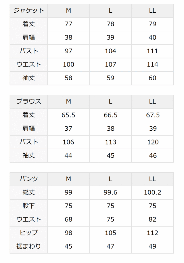 | 喪服サイズ | M L LL 3L |